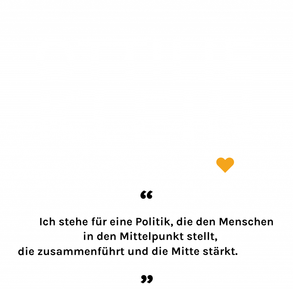 Als Union machen wir Politik für die breite Mitte der Gesellschaft. Bei uns steht der Mensch im Mittelpunkt, nicht die Ideologie. Was wir brauchen, ist eine Politik, die nicht die Unterschiede, sondern das Gemeinsame im Blick behält – eine Politik, die nicht trennt, sondern zusammenführt.